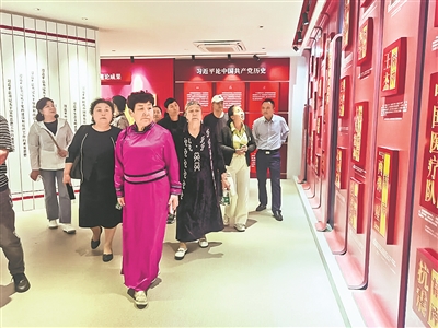 欧托哈身着民族服饰参观。