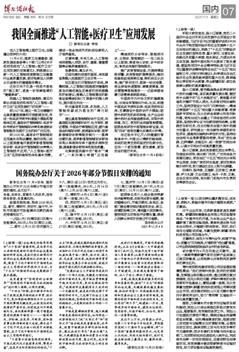 11月4日,国家卫生健康委、国家发展改革委等5个部门公布《关于促进和规范“人工智能+医疗卫生”应用发展的实施意见》,明确提出以新一代人工智能深度赋能卫生健康行业高质量发展,更好地满足人民群众日益增长的健康服务需求。
