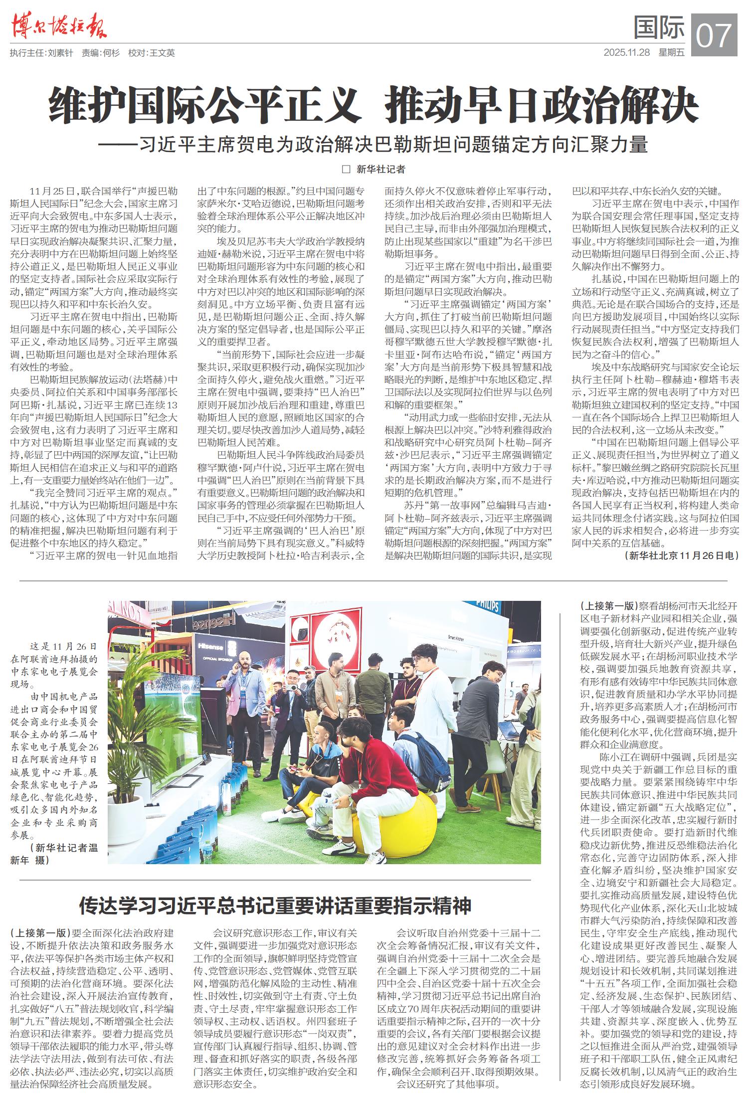 维护国际公平正义 推动早日政治解决