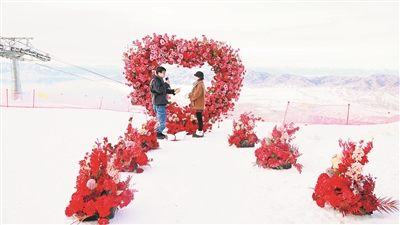 12月2日,一对情侣在赛里木湖滑雪场1314大道求婚。