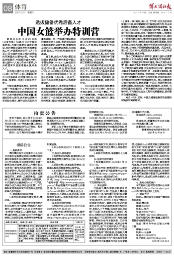 新华社北京12月26日电 (记者苏斌) 记者26日从中国女篮获悉,为做好国家女篮梯队建设,同时兼顾女篮世界杯资格赛备战工作,中国篮球协会于12月7日至31日在国家体育总局训练局组织开展国家女篮特训营。特训营坚持强弱项、补短板的基本方针,着力提升个人能力和战术素养,为后续国家队选拔储备优秀后备人才。