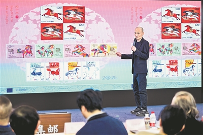 1月29日,《丙午年》生肖邮票设计师赵恩重介绍《丙午年》生肖邮票设计理念和传统生肖文化的多元化表现形式。