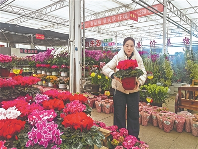 市民杨映凤选购了一盆红掌,笑容满面地说:“买点鲜花给家里添些喜气,营造过节的氛围。”