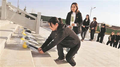为英烈敬献鲜花。 (记者贾晓雪 摄)